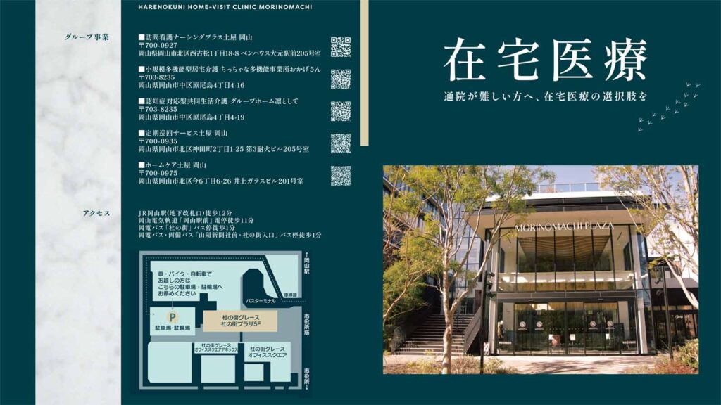 はれのくに在宅クリニック杜の街は、これからも岡山市を中心に、地域に根ざした在宅医療の提供に努めてまいります。今後ともどうぞよろしくお願いいたします。